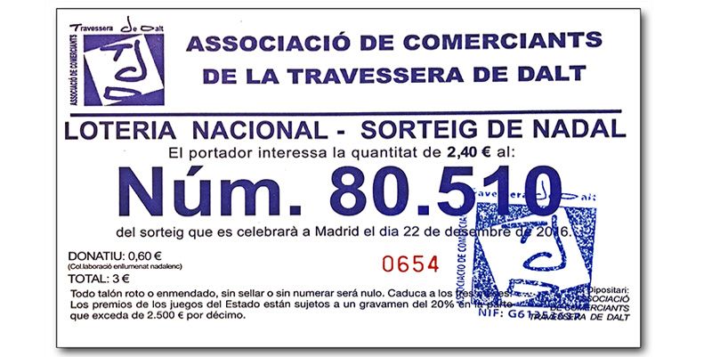 Comprant en els establiments adherits a l’Associació de Comerciants de Travessera de Dalt, durant el mes de desembre del 2016, entraràs en el sorteig d’un “Xec Regal” de 500€ per utilitzar en els comerços i establiments de l’Associació de Comerciants de Travessera de Dalt.